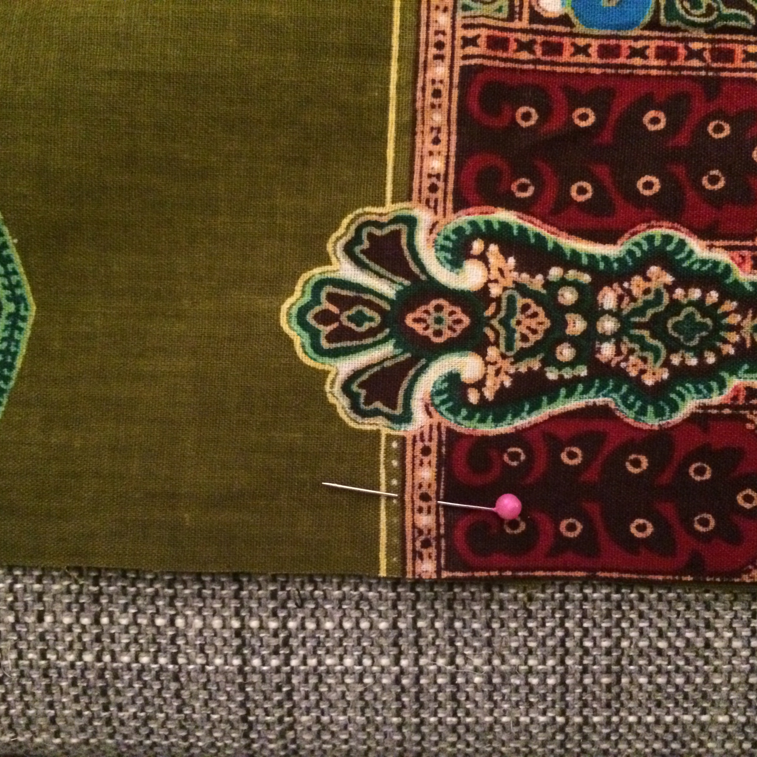 Once you have both sheets, turn them inside out — That way, your stitches are on the inside, and make for a cleaner finish. You’ll sew one side at a time. To keep your fabric lined up, and to make sure you’re stitching in a straight line, use your sewing pins. Roughly half an inch from the bottom of each side of fabric: